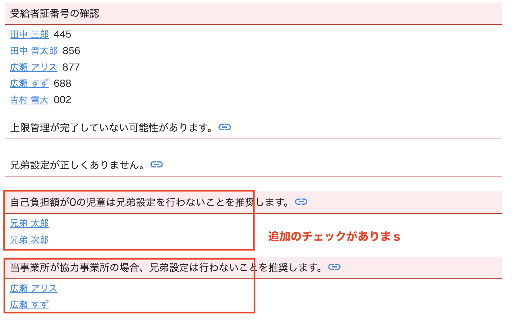 兄弟設定は上限管理のためのものであり、当事業所が上限管理を行わない場合は設定の必要がありません。多くの場合、設定しても問題が発生しないようにシステム側で工夫をしておりますが、兄弟上限の複雑さが増しており確実な請求を行うためにチェックを追加しました。