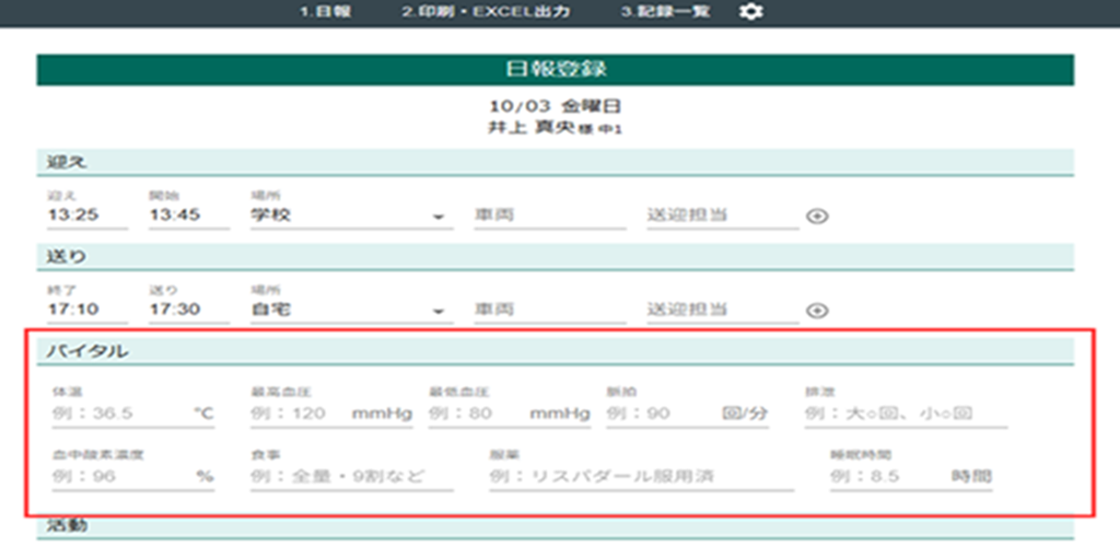 日報と連絡帳のバイタル項目が追加になりそれぞれが同期するようになりました。