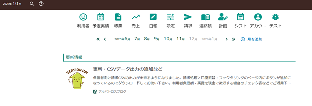 多機能事業所での利便性の向上です。予定実績-月間の画面で全サービスが表示可能になりました。