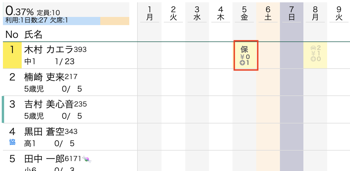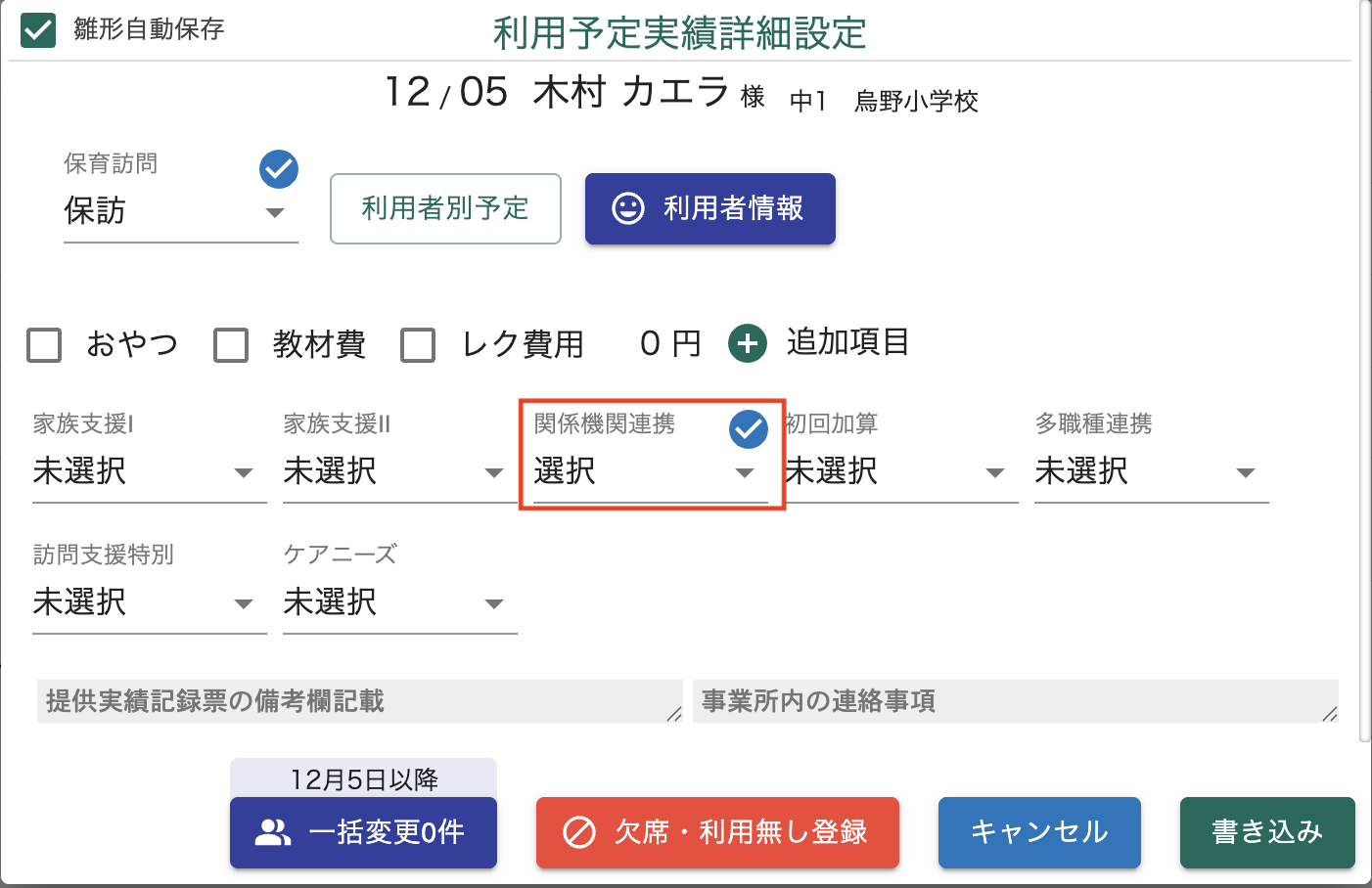複数サービス利用者の場合、例えば放デイの予定入力の加算として保育訪問が出ていきます。